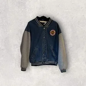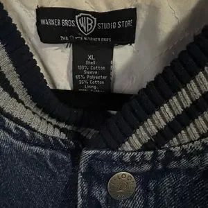 Rare Vintage Looney Toons bomber jacket from Warner Brothers employee store. Purchased in 1985, sold as is with some staining on the inside and on the side, but it’s not super visible from the outside because the jacket is a dark color. Embroidered with Looney Toons designed in the front and back. Cloth lining with cotton denim shell and cloth arm sleeves. Front button up, ultra warm!!