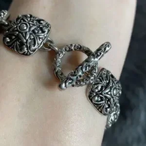 Beautiful silver tone Premier Design Bracelet. Looks heavy but is light weight. Toggle clasp bar closure