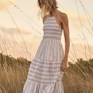 Ella Striped Smocked Strappy Open Back Tiered Maxi Dress