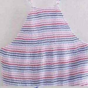 Bust is smocked & adjustable tie back, so it has stretch