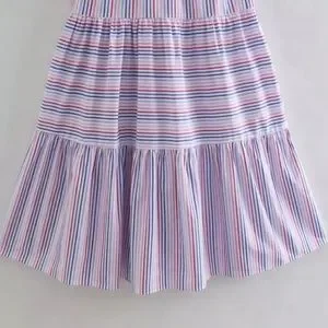 Striped Smocked Bodice Tiered Silky Strappy Open Back Maxi Dress