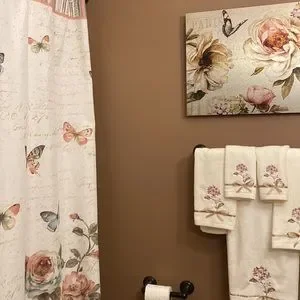 Does the curtain in the flowers on the walls and the towels go with this or is it just a picture and if it doesn’t go with it where is it at so I can buy it together please