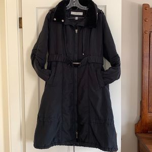 Laundry by Shelli Segal black puffer coat. Size L. Gently worn. Missing zipper pull (see pics). Belt is a bit stretched out.