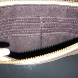 Great Coach wallet in very good condition colored dark tan on tan. Super clean inside and out with a speck of dirt on the zipper so I’m only asking $45 but please feel free to *make an offer*. It’s got two zipper pockets with individual compartments inside each. The zippers glide very smoothly.