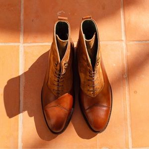 The Panuncio Bolivar Balmoral Boot in brandy colored suede/leather combo.