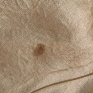 Preloved but totally fresh piece but one very light stain have in the last portion of saree. i have mentioned in last picture,not torn or fade colour