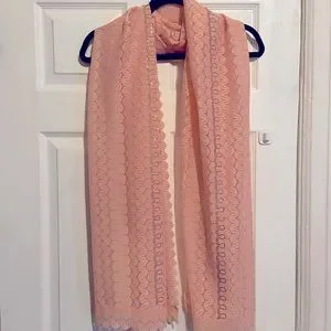 Beautiful Pink lace scarf, never worn but some jewels missing as shown in last photo. Overall, missing jewels are not noticeable.