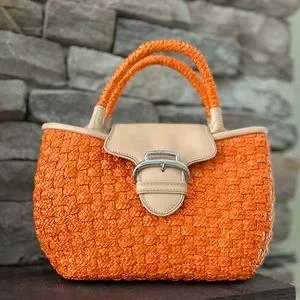 Cole Haan Straw Handbag with Leather Trim
