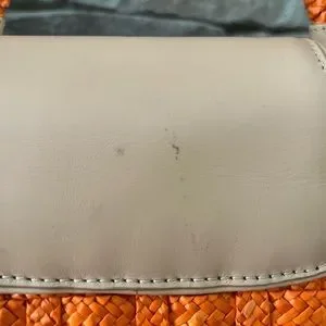 Great condition- no cracks/breaks/damage/fading of the orange straw. A few small marks on back leather flap & a small ink mark on the inside (I may try to remove that) Super clean interior - no marks or signs of wear.