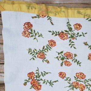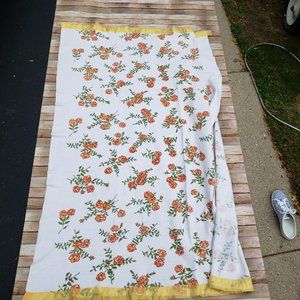 Pretty heavy weight woven cotton blanket with a pretty Orange / Yellow floral design on it. Blanket is in very nice condition except there is 1 small stain on it. I did not try to remove it (see last photo). It is hard to find vintage blankets this nice that have a print on them. It has a yellow satin edge sewn around each long end. Print is made on just one side however it does show thru a bit to the back. I wasn't able to spread this out all the way on my background so notice that it is folded over in each picture. I did switch it around so you can see it all by looking thru the photos.