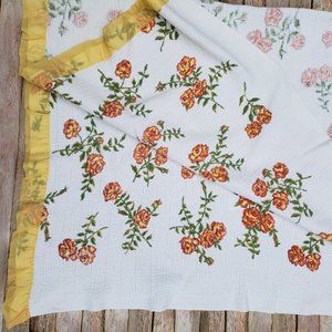 Vintage 70s Woven Cotton Blanket / Throw with floral design