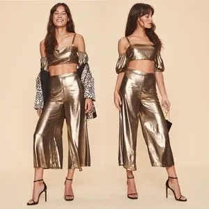 LPA Pant 664 crop pants. Gold Lurex. Metallic. Semi sheer. Wide leg. Cropped length.
