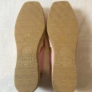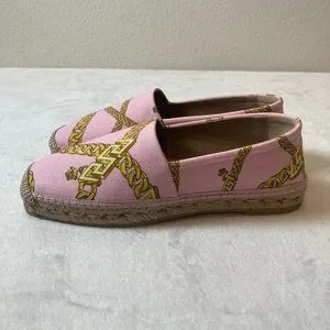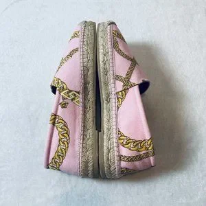 Versace Chain-Print Cotton Espadrille Loafers Pink Size 10B New In Box Authentic