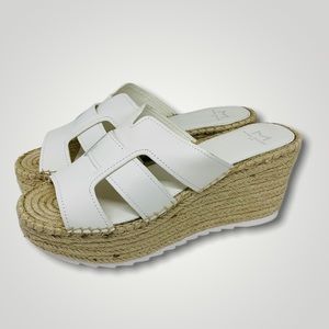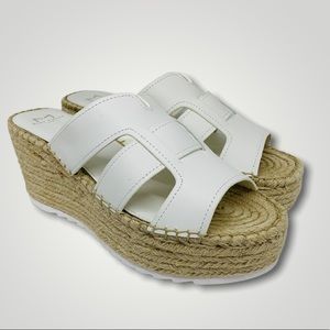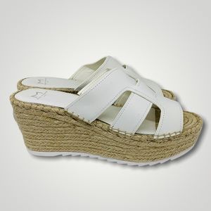 NIB Marc Fisher White Leather Robbyn Espadrille Wedge Sandals