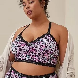 Torrid unlined microfiber with lace trim printed bralette.