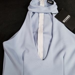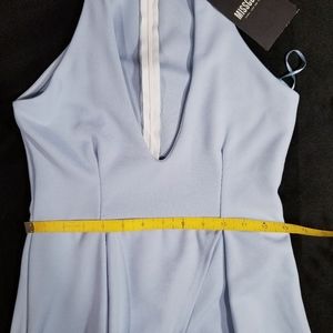Missguided light blue sleeveless dress, halter V deep neckline, wrap open style, aprox 20" hidden back zipper. 95% polyester 5% elastine. NWT.
