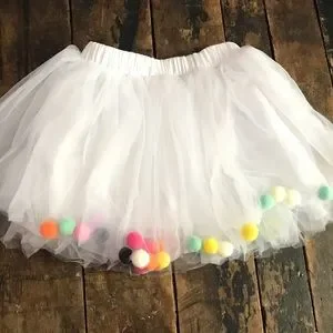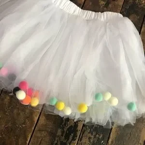 White Rainbow Pom-Poms Tutu Tulle Skirt Toddler Medium 3T 4T