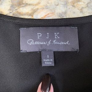 PJK brand SZ LG silky soft top spaghetti strap adjustable. See pics for measurements. NWT. Never worn. Very pretty top, front accordion center.