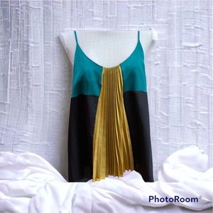 Beautiful cocktail top super silky soft SZ LG spaghetti straps, accordion front