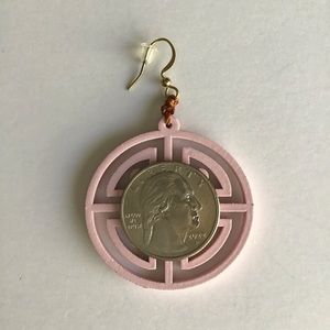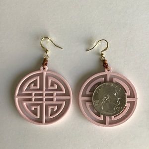 This particular style is an open work, Asian medallion theme with a pale pink lacquer finish paint on both sides, tied at the top with a brown piece of waxed cord. Very elegant and perfect to wear with a variety of styles. These look fabulous with summer Lilly-style pieces and sundresses!