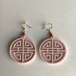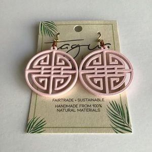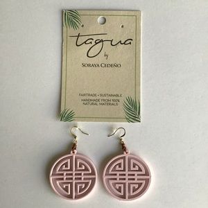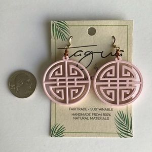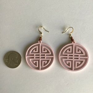 NEW Medallion Earrings Asian-Style Pink Lacquer Open Work Tagua Nut Lightweight