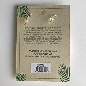 This eco-friendly, organic jewelry is made from a nut called Tagua (pronounced TAG-WAH) or Vegetable Ivory. Tagua is a sustainable nut that grows from palm trees found mainly in the Ecuadorian rainforest. It takes the fruit 12-18 months to dry in order for it to become the hardened, natural nut used in Tagua jewelry.