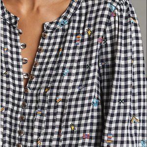 Anthropologie Pilcro M NWT Embroidered Gingham Buttondown Shirt Top Blouse