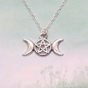 Silver Triple Goddess Moon Pentagram Wicca Necklace