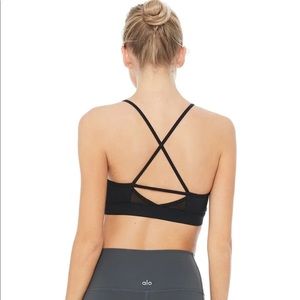 Glam high-neck style with slim crisscross straps in the back. The Starlet Bra has small mesh details for breathability and inversion-friendly front coverage with medium support and removable cups. So good for practice & pavement.