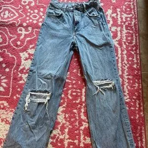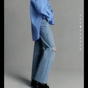 Zara straight leg jeans with rips. Cuter cute and flattering. Will be wrinkle free when bought :)zipper and button work great