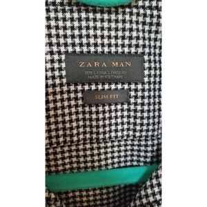 Zara Man Black White Large Hounds tooth Button Up Shirt.