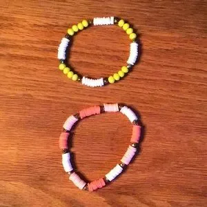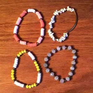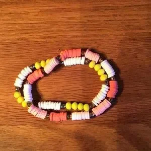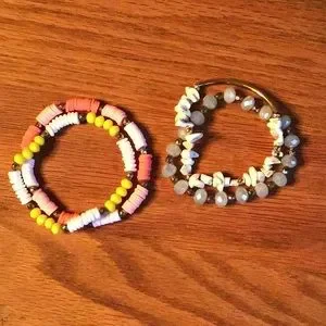Adorable bracelets, wear 1,2,3 or 4 at a time. Light blue, white, white and pink, white and yellow. Very good overall used condition. Bundle 2 or more items and Save automatically.