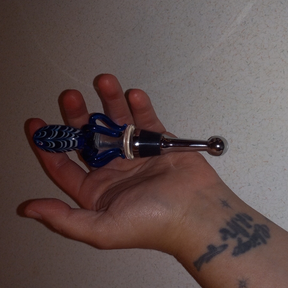 This is a blue and white striped glass wine stopper. Will come with free gift or if your considering a trade @Clydekid for more info. All items I sell or trade come with free gift.