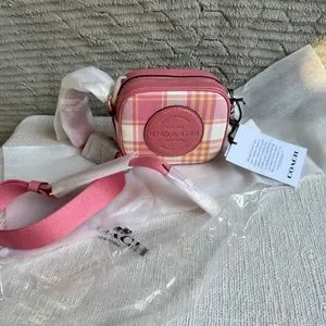 COACH Mini Dempsey Camera Bag With Garden Plaid Print And Coach Patch BRAND NEW