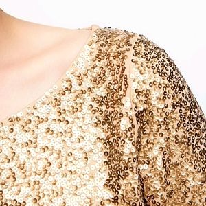J Crew Gold Sequin Boatneck Top Three-quarter sleeve