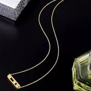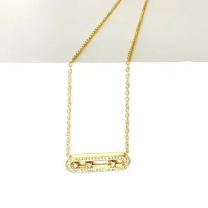 🆕 Gorgeous 18k Diamond Slider Oval Bar Necklace NWT