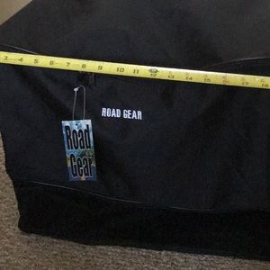 Road Gear Collapsible Bag. velcro sides. Bottom mesh storage 5” high. Can put beer cans or water bottles in mesh compartment. Over all dimensions 15” x 18” wide x 12” deep. Collapses to approximately 3” x 12” x 18” for easy storage. Comes from a smoke free and pet free home. Tags: travel, beach bag, gym bag, cargo bag, storage bag, fold down, locker bag, unisex