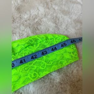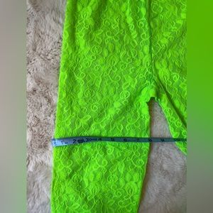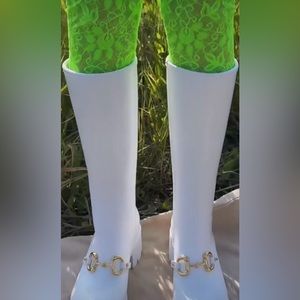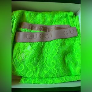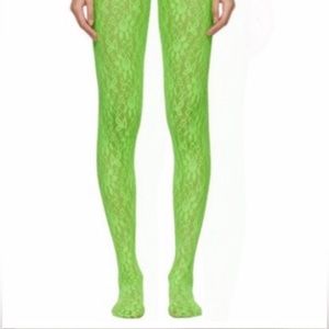 Bright green elastic lace tights with Gucci lettering!