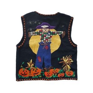Hampshire Studio Halloween Pumpkins Bats Scarecrow Zip Up Vest Medium
