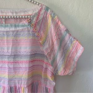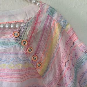 Breezy swing top with embroidered playful neon colors.