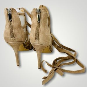 Sam Edelman Alba Tan Suede Lace Up Cage High Heeled Sandals