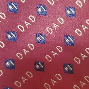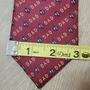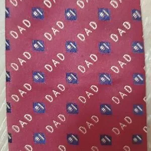 good used condition. Brand Unknown. 💯 Polyester. rusty red, gold and blue. length 57 inches. DAD necktie.