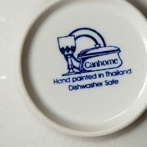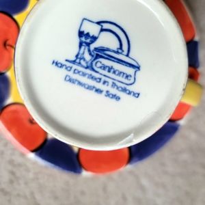 So vibrant, pretty and cute Dishwasher safe Saucer 4.75" in diameter Cup 2.5" in height, 2.25" in diameter Hand-painted in Thailand 🇹🇭 Pre-owned, great condition except one cup is chipped on bottom (see last 3 photos) Bundle and/or Offers to save more