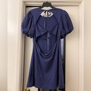 A beautiful indigo colored cotton Free People dress with a cutout back, ties gorgeously with ribbon. Brand new, never worn, tags on. 100% cotton and feels sturdy and substantial.
