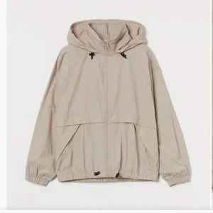 Like New lightweight windbreaker. Easy to pack. With hood that can be concealed in collar
