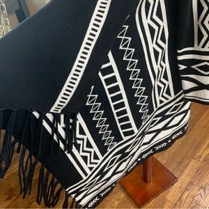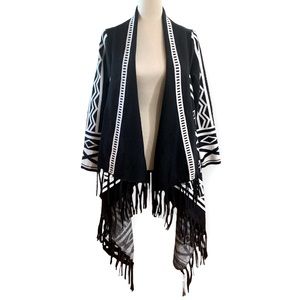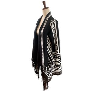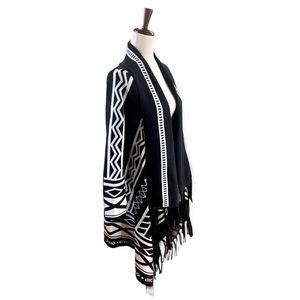 Chico's Wrap Aztec Print Cardigan with Fringe Trim