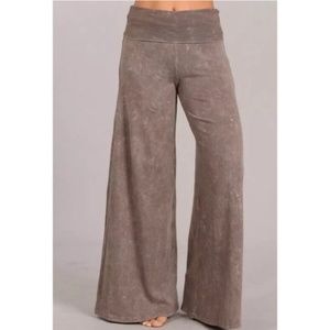 SOLD OUT Desert Taupe Mineral Wash Wide Leg High Waist Palazzo Boho Casual