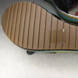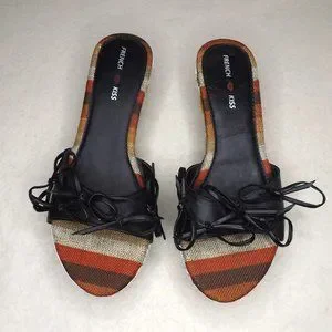 Style: Slip-on, slide-on, heels, wedge, dressy or business casual, unique. Multi-colored slip-on wedge. The black bows can be untied and re-tied.