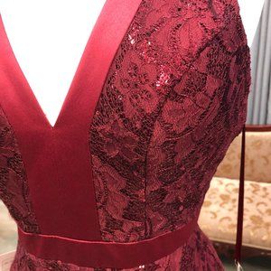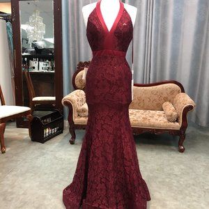 Burgundy Halter Sexy Low Back Prom Dress, Size 0 2 4, Mermaid, Sequin & Lace