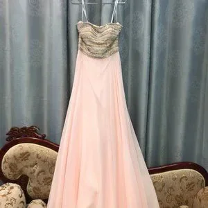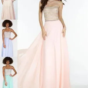 Alyce Blush and Gold Prom or Bridesmaid Dresses, Strapless Aline Flowy chiffon
